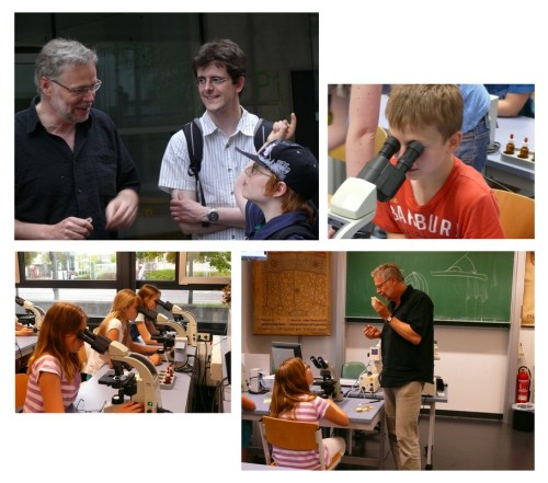 Im Rahmen der Vortragsreihe „Entdecke den Kosmos“ gaben sich Theorie und Praxis die Hand. Am vorletzten Freitag erzählte Frau Mechthild Meinike vom Planetarium Merseburg über einen wichtigen Zweig der Sternenwissenschaft, nämlich über die Archäoastronomie. Dieses Forschungsfeld bietet gerade in Mitteldeutschland – zum Beispiel durch die Funde von mehreren Kreisgrabenanlagen – viel Beschäftigung. Geschichte gehört also auch zur Astronomie genauso wie die Biologie. Herr Dr. Ihl lud die ASTROlinos ins hallesche Biologikum ein. Dort erhielten sie einen Blick in den Mikrokosmos. Durch Mikroskope konnten die ASTROlinos jene einfachen Bakterien anschauen, die schon vor Milliarden Jahren auf der Erde lebten. Sehr lebendig und lehrreich auch für die Großen gestaltete Herr Dr. Ihl unseren Exkurs. Wann sieht man schon einmal einzelne Zellen der Zwiebelhaut oder in einem Stengelquerschnitt von Mais? Die Faszination des Kosmos liegt also nicht nur im Großen und Entfernten …
