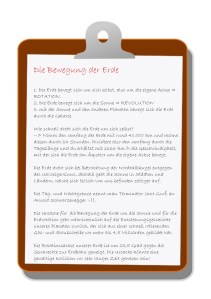 Beim letzten ASTROlino-Treffen haben nun auch die jüngsten ASTROlinos gelernt, dass sich die Erde um sich selber und um die Sonne bewegt. Für die größeren ASTROlinos war es eine gute Wiederholung, einmal wieder den Blick auf den Erdglobus zu richten. Sie berechneten aus der Tageslänge und dem Erdumfang schnell die Rotationsgeschwindigkeit unseres Planeten am Äquator, während die Kleinen über die Entstehung von Tag und Nacht philosophierten. Einen kurzen Notizzettel zum Thema „Die Bewegung der Erde“ gibt es weiter unten. Auch ein Arbeitsblatt ist entstanden. Die letzte Aufgabe ist kniffelig, denn sie weist auf weitere Bewegungen hin, welche die Erde im Laufe der Zeit so ausübt. Darum geht es beim nächsten ASTROlino-Treffen, wenn es heißt: „Die Erde kippelt!“