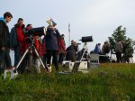 Da staunten die Sternfreunde nicht schlecht! Tatsächlich mal ein wichtiges Himmelsereignis, das nicht ins Wasser fällt. Auf dem Hasenberg am Wasserspielplatz in Heide Süd hatten sich zu früher Stunde erstaunlich viele Sterngucker versammelt, um gemeinsam einen Blick zur aufgehenden Sonne inklusive kleinem Venusscheibchen zu wagen und sie wurden nicht enttäuscht. Schnell war die Venus vor der Sonne sichtbar, sogar mit einer einfachen Finsternisbrille konnte man schon einen kleinen Punkt auf der hellen Sonne erkennen. Die vielen Teleskope, welche die Mitglieder der Gesellschaft für astronomische Bildung e. V. auf den Berg getragen haben, zeigten die Venus schon als dunkles Scheibchen, was die Besucher sichtlich beeindruckte. Unter die Besucher haben sich mit Tom und Theo auch zwei ASTROlinos gemischt, die vor der Schule noch einen Blick zur Venus wagen wollten … tapfer, tapfer Jungs! Enrico hat von einem anderen Ort sogar ein Foto von der Sonne mit der kleinen Venus drauf hinbekommen.