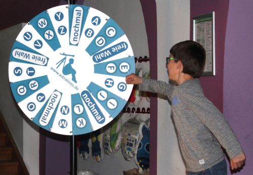 ASTRONOMIE ist eine Wissenschaft, die viel zu bieten hat. Das haben die ASTROlinos und ihre Gäste am Freitag im Krokoseum erleben können. Nicht am Glücks- sondern am Wissensrad konnten alle Kinder drehen und als Preise gab es keine Süßigkeiten sondern Astrowissen, was von den Kindern sehr gern mitgenommen wurde! Zu den Buchstaben am Astro-Wissensrad wurden schnell passende Astro-Begriffe gefunden, von „I“ für interstellar über „M“ für Milchstraße bis „O“ für Oortsche Wolke war es eine bunte Begriffe-Mischung. Die Erklärungen dazu waren nicht immer einfach, aber spannend 🙂