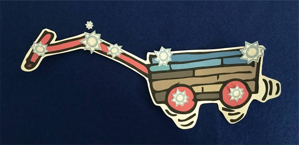 Die sieben auffälligen Sterne des Großen Wagens sieht man das ganze Jahr über am Sternhimmel, sie gehen über der Stadt Halle und über ganz Deutschland niemals unter. Man stellt sich einen alten Handwagen vor, der an einem langen Griff, der Deichsel gezogen werden kann. Wenn ihr euch die Sterne der Deichsel einmal genauer anschaut, findet ihr bei einem der Sterne einen kleinen zweiten Stern – der Augenprüfer. Testet es am Sternhimmel, wie gut sind eure Augen?