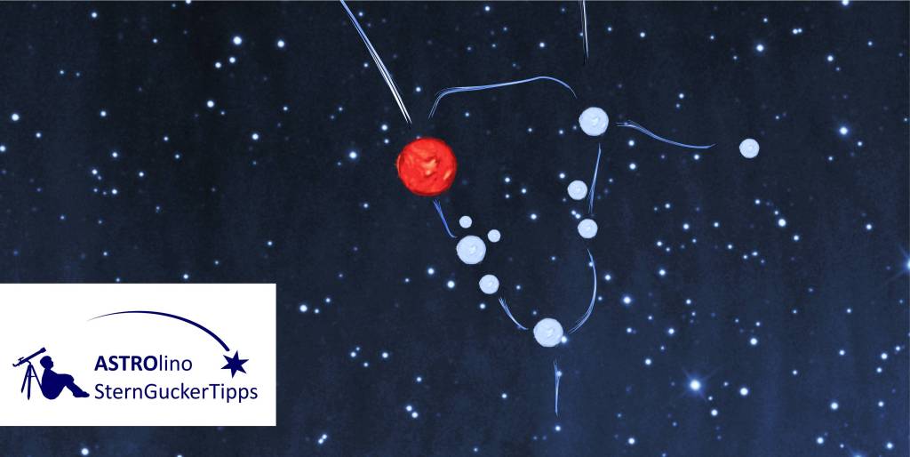 Heute gehen wir auf die Suche nach dem rötlichen Stern „Aldebaran“. Er ist das Auge und der hellste Stern im Sternbild Stier. Aldebarans rotes Licht verrät, dass er das Ende seines Sternlebens erreicht hat. Im Gegensatz dazu erstahlen die benachbarten Sterne der Plejaden in einem bläulichen Licht und sind, verglichen mit Aldebaran, vielleicht gerade erst im Sternen-Kindergarten.