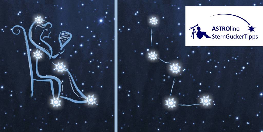 Nicht nur den Kleinen und Großen Wagen kann man das gesamte Jahr über am Stemhimmel sehen. Auch das Sternbild Kassiopeia geht in unseren Breiten niemals unter. Der Sage nach war Kassiopeia eine Königin, die mit Eitelkeit und Prahlerei ein großes Unheil über ihr Volk brachte. Das Sternbild ist aufgrund seiner auffälligen Form auch als das „Himmels-W“ bekannt.