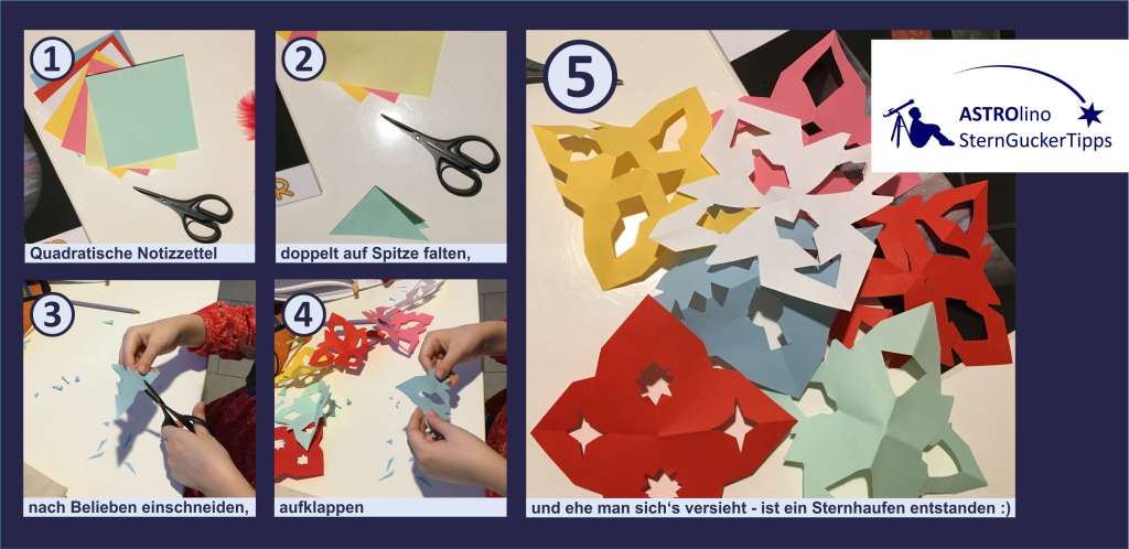 Bereits am 5. Dezember haben wir einen Beobachtungstipp zum Siebengestirn gegeben. Das Siebengestirn im Sternbild Stier ist ein Sternhaufen, da hier sehr viele Sterne dicht beieinander stehen. Heute gibt es von uns einen Sterne-Basteltipp, um die letzten Tage bis Weihnachten zu verkürzen 😊