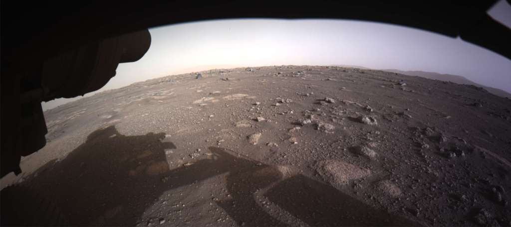 Erst vor wenigen Tagen ist der Marsrover Perseverance auf dem roten Planeten Mars gelandet. Schon bald nach der erfolgreichen Landung erhalten wir aus mehr als 200 Millionen Kilometern Entfernung tolle Bilder, wie das erste Landschaftsfoto in Farbe. Das Bild wurde von den Hazard-Cameras, welche sich an der Unterseite des Rovers befinden, aufgenommen und zur Erde geschickt.