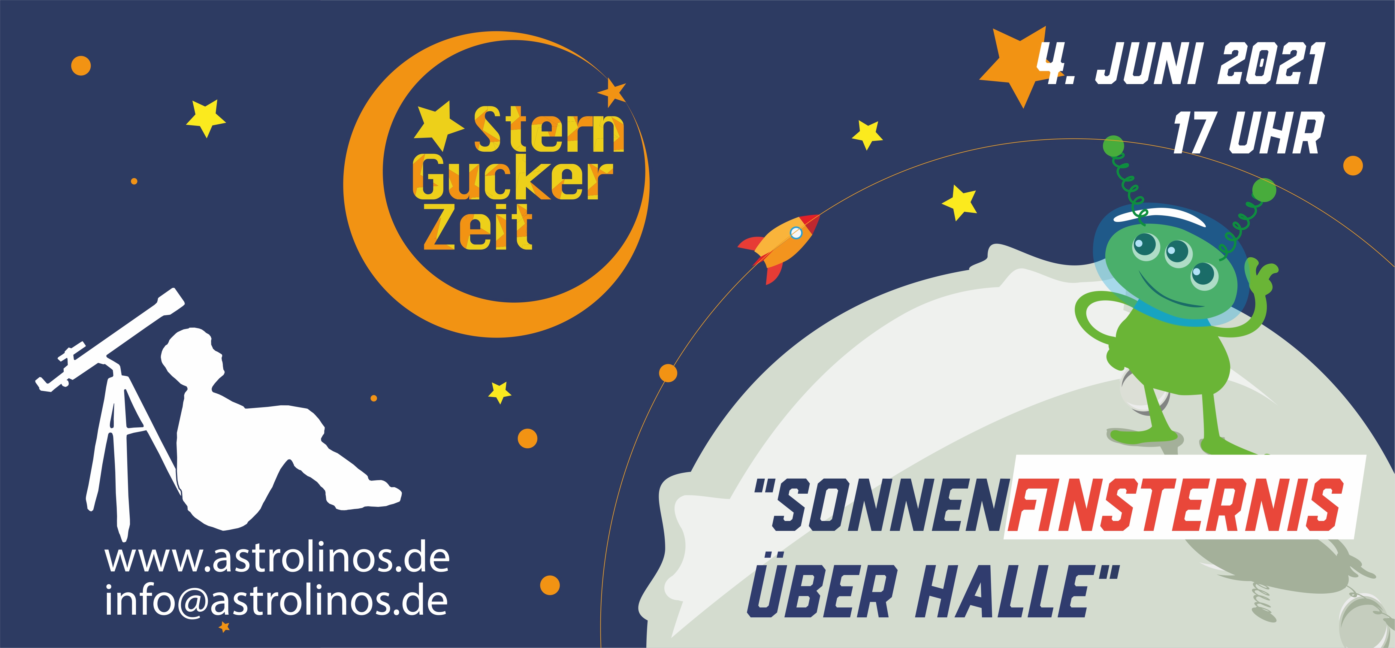 Am Freitag, den 4. Juni um 17 Uhr laden wir zur SternGuckerZeit Online ein. Schaut zusammen mit den ASTROlinos und dem Krokoseum, was es mit der kommenden Sonnenfinsternis über Halle auf sich hat. Lange mussten wir warten! Vor sechs Jahren ereignete sich zuletzt eine teilweise Sonnfinsternis über Halle. Jetzt, am 10. Juni, werden wir erneut die Chance bekommen, dieses seltene Himmelsschauspiel zu erleben.