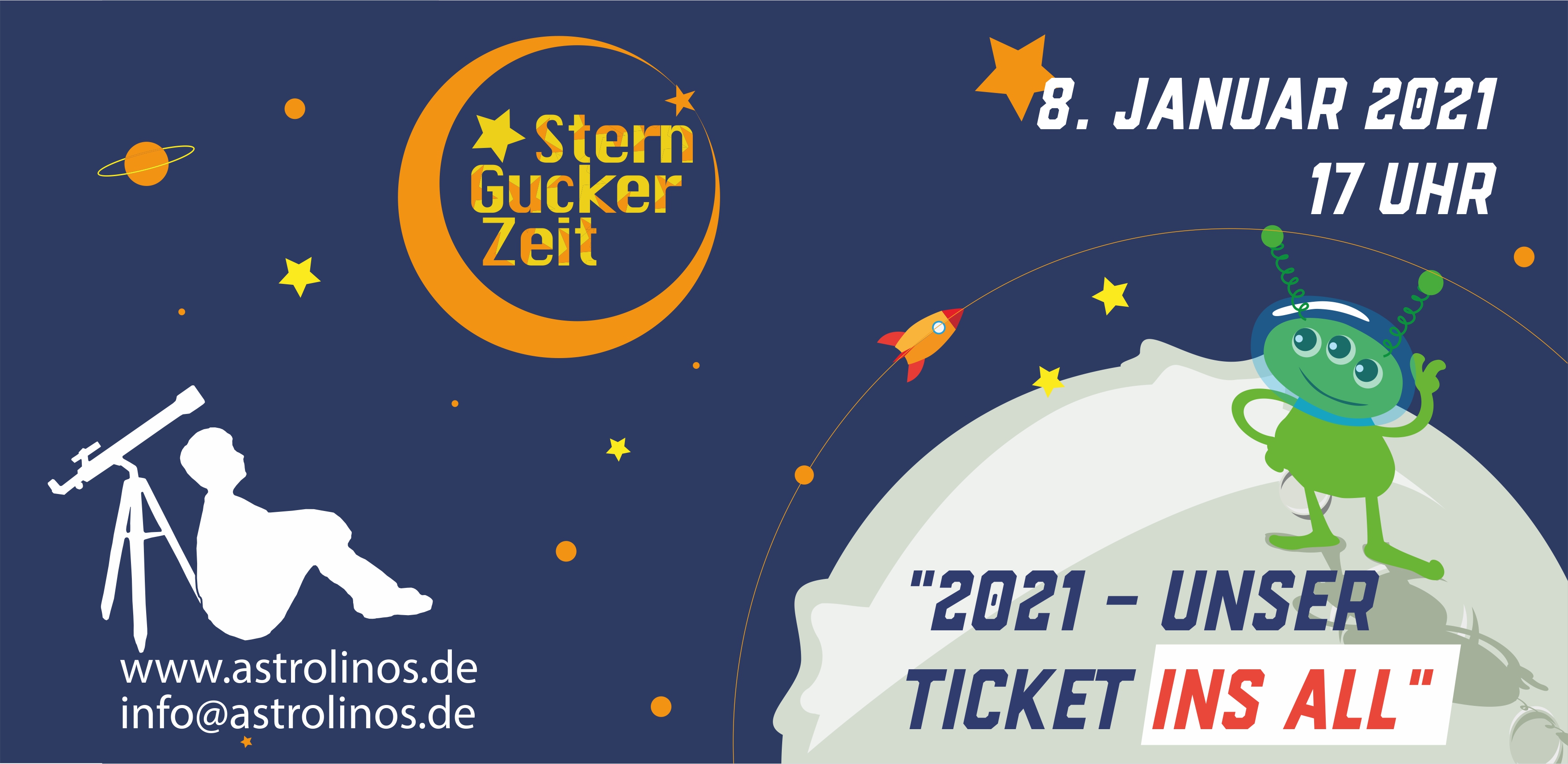 Unter dem Motto „Mein Ticket ins All“ haben wir in der letzten ASTROlino-SternGuckerZeit auf das neue Jahr 2021 geschaut. Tatsächlich gibt es viele Raumfahrtmissionen in diesem Jahr: