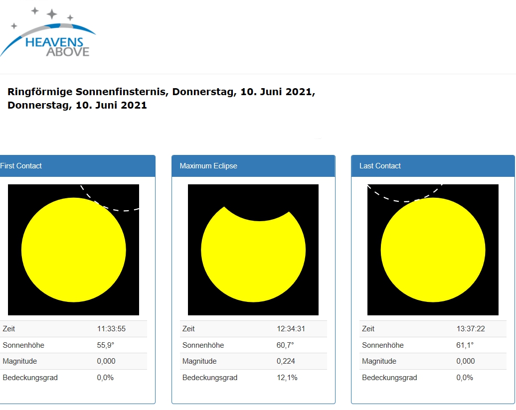 Der Verlauf der teilweisen Sonnenfinsternis über Halle (Saale). Bildquelle: https://heavens-above.com